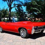 The 1968 Chevrolet Impala Convertible stands as a true testament to the golden age of American automobile engineering, blending power, style, and sophistication in one harmonious package. This iconic classic, finished in a captivating red exterior with a convertible soft top, encapsulates the spirit of open-top cruising with a touch of nostalgia.